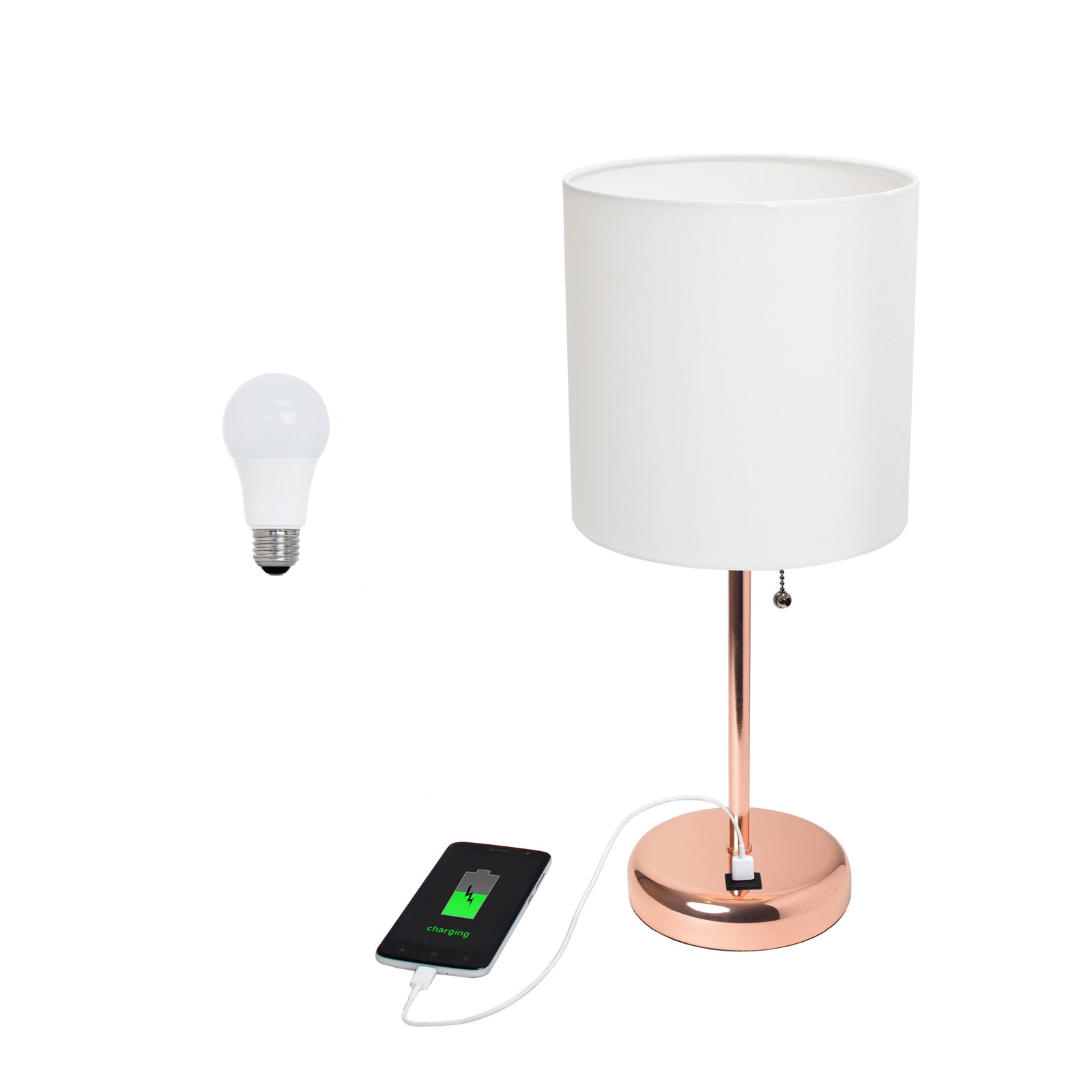 Contemporary Rose Gold Metal USB Charging Port 19.5" Table Desk Lamp